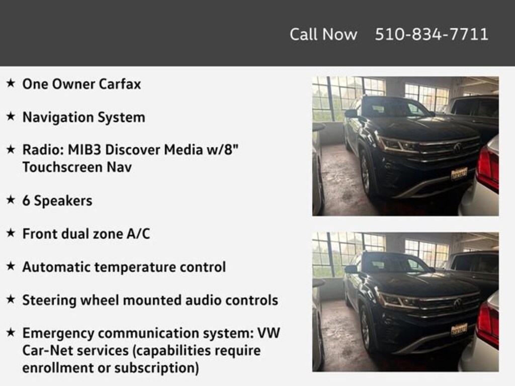 Certified. One Owner Carfax, 6 Speakers, Automatic temperature control, Emergency communication system: VW Car-Net services (capabilities require enrollment or subscription), Exterior Parking Camera Rear, Front dual zone A/C, Fully automatic headlights, Heated front seats, Navigation System, Perforated V-Tex Leatherette Seating Surfaces, Power Liftgate, Power moonroof, Radio: MIB3 Discover Media w/8" Touchscreen Nav, Steering wheel mounted audio controls, Wheels: 20" 5-Spoke Silver Alloy (V71).