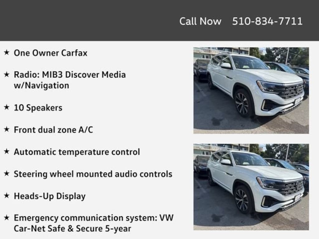 Certified. One Owner Carfax, 10 Speakers, 2nd-Row Dual Captain's Chairs, 3rd row seats: split-bench, Automatic temperature control, Emergency communication system: VW Car-Net Safe & Secure 5-year, Exterior Parking Camera Rear, Front dual zone A/C, Fully automatic headlights, Heads-Up Display, Heated/Actively Ventilated Front Bucket Seats, Perforated Vienna Leather Seating Surfaces, Power Liftgate, Power moonroof: Panoramic, Radio: MIB3 Discover Media w/Navigation, Steering wheel mounted audio controls, Ventilated front seats, Wheels: 21" 2-Tone Machined Alloy.